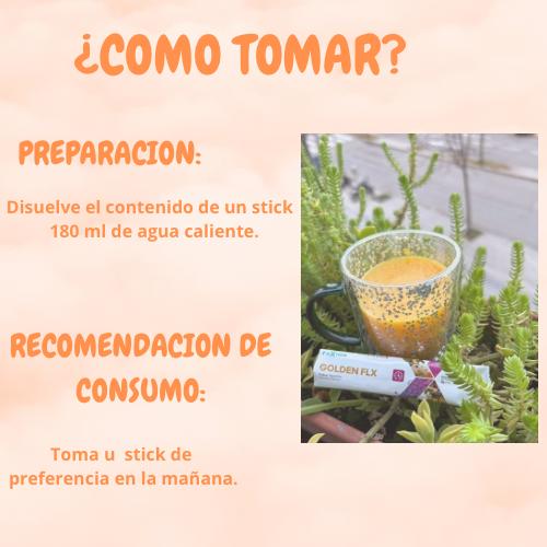 - Disolver 1 sobre de GOLDEN FLX en 200 ml de agua.